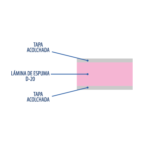 Núcleo en espuma flexible de poliuretano densidad media, que genera una superficie confortable a la hora de descansar.